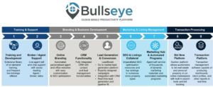 The crowning jewel of its tech offerings is its proprietary cloud-based Bullseye Agent & Broker Productivity Platform, which gets 30,000 agent logins each month.